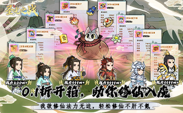 《圣光之战》是一款修仙题材的角色扮演开箱子游戏,一念仙魔,真实双修。喵喵百宝袋出法宝修炼不肝不氪轻松养成,是你从未体验过的修炼小游戏!玩家可以在游戏中自由探索属于自己的修仙世界,培养属于自己的灵兽、坐骑等。通过开百宝袋开出海量不同品质装备,给热衷刷装备的玩家带来最享受最丰富的收集体验。还有收集化身,神器,功法等多种特色玩法,游戏整体画面精致,玩法轻松无压力,游戏操作也十分简单易上手。